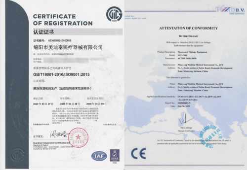 凭借着对技术研发的执着投入和校企协同的创新优势,美迪泰在核心技术领域取得了丰硕成果:截至目前,其已获发明专利、设计专利、实用新型专利共19项,制定企业标准1项;同时通过了质量管理体系认证,并获得有自愿性产品认证证书,多项权威认证彰显了其在生产管理和产品质量上的突出优势;2022年,美迪泰更是成功拿下CE欧盟出口证书,产品获得国际认证,进一步奠定了其在市场上的领先地位。