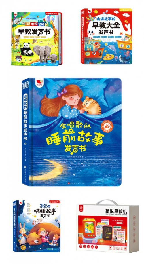 早教启蒙系列,《孩悦智能早教发声书》《会讲故事的早教大全发声书》《会唱歌的睡前故事发声书》《孩悦智能早教机》等系列累计销售150万+册。