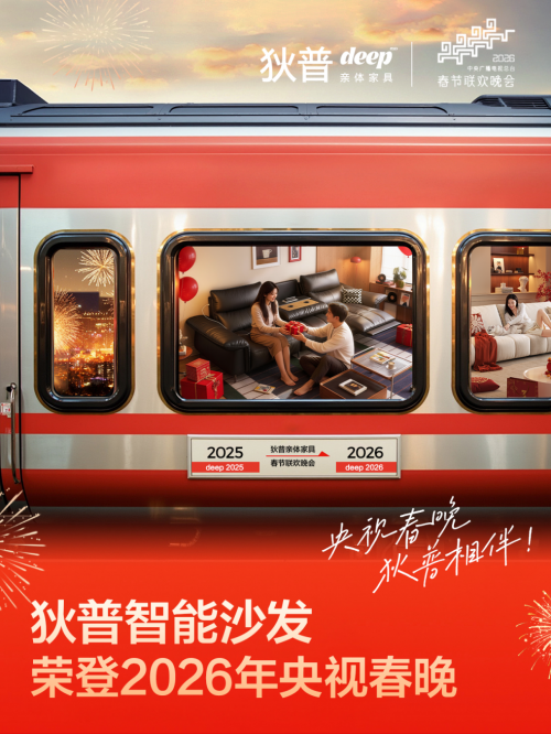 2026年农历新年,央视马年春晚的团圆氛围中,一抹家居温度悄然融入——狄普亲体家具以智能沙发为核心,通过IPTV角标形式登陆春晚荧幕,与亿万家庭共同迎接新年。这不仅是一次品牌曝光,更标志着狄普从深受年轻群体喜爱的家具品牌,正式步入国民级视野,成为陪伴中国家庭欢度佳节的生活伙伴。