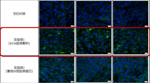 在生物活性验证中,ECM胶原展现出卓越的“协同增效”能力。细胞实验表明,其能显著激活成纤维细胞,促进细胞黏附、分化和增殖。具体数据显示,与空白对照组相比,ECM胶原使细胞黏附关键蛋白Integrinβ1的表达提升40%,促使细胞向修复型肌成纤维细胞分化的标志物α-SMA表达提升16%。尤其值得关注的是,在促进成纤维细胞增殖方面,ECM胶原表现出强劲活力,为皮肤自我修复与胶原新生提供了细胞层面的动力源泉。